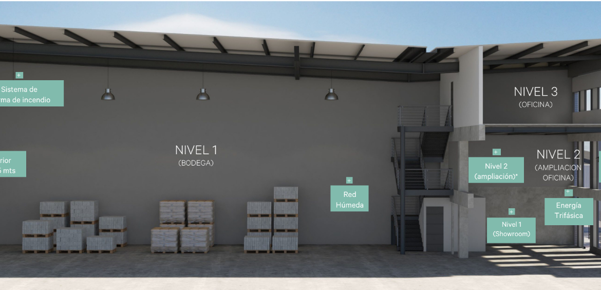 Centro de bodegas con ubicación privilegiada, modernas instalaciones y amplio patio de maniobras. Su emplazamiento estratégico ofrece acceso directo por la Autopista Nororiente y Ruta 5 Norte, conectando eficientemente con los principales puntos de la ciudad: a solo 15 minutos de Vitacura, 10 minutos de Chicureo, 20 minutos del centro de Santiago y 20 minutos del Aeropuerto Internacional de Santiago.