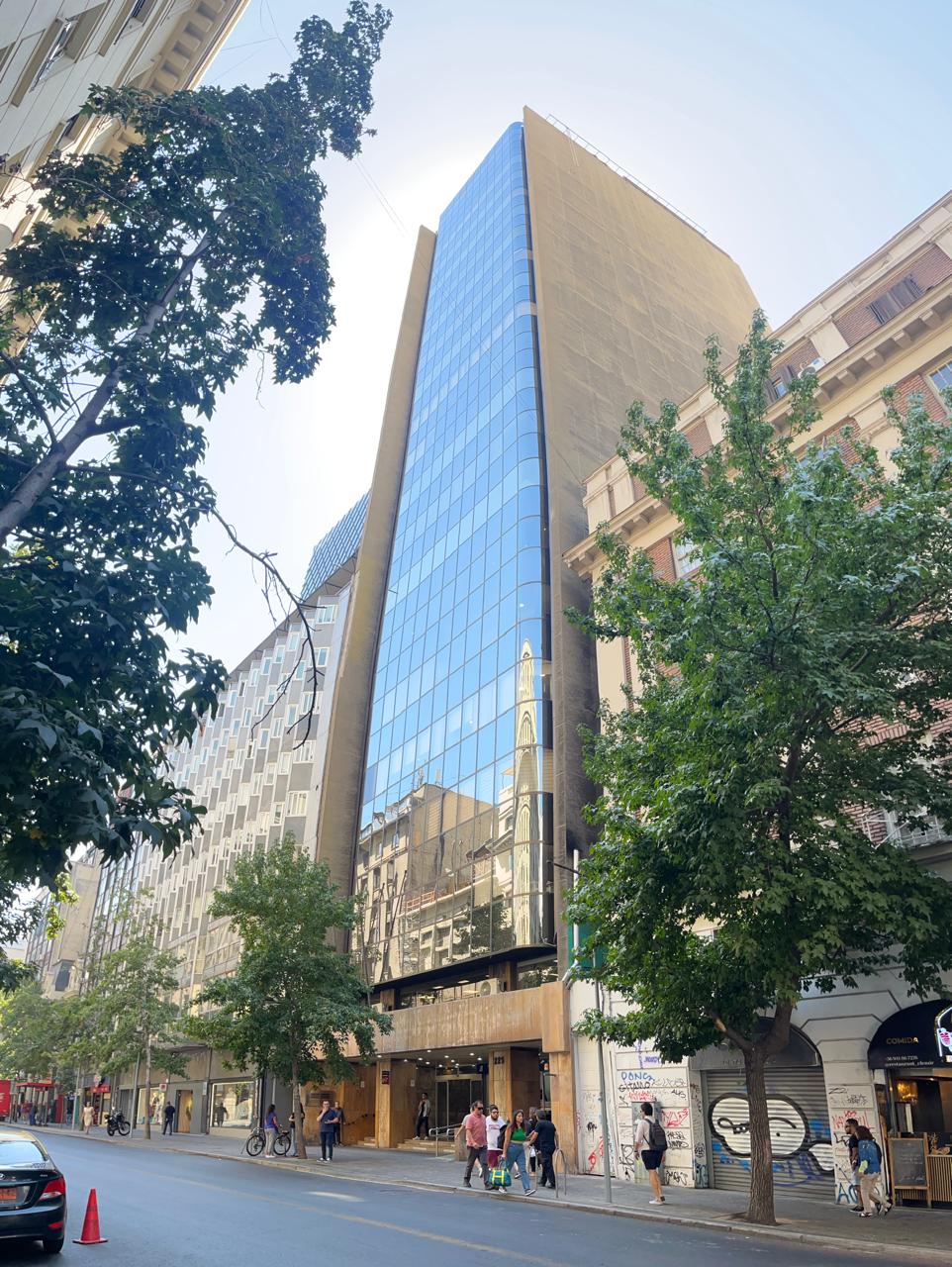 Vistas despejadas al centro de Santiago y cerro Santa Lucía. Oficina habilitada en piso completo con gran conectividad, a pasos del metro estación Sta. Lucía (L1), transporte público y fáciles accesos desde y hacia todos los sectores de la ciudad. Gran variedad de servicios.