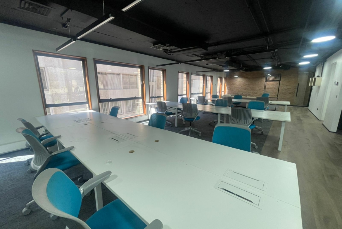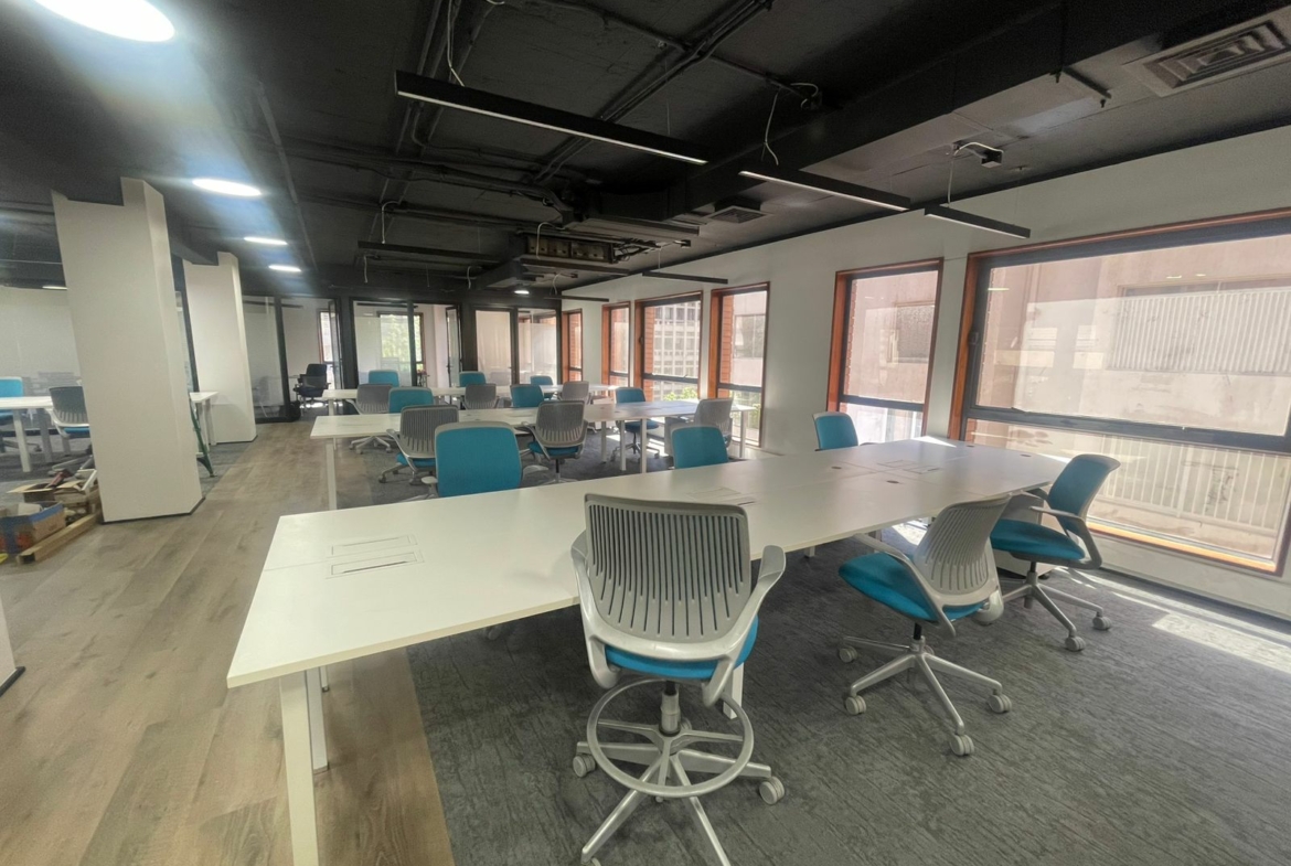 Edificio de 9 pisos, con 2 oficinas por piso. 2 ascensores y 2 subterráneos. Seguridad 24/7
